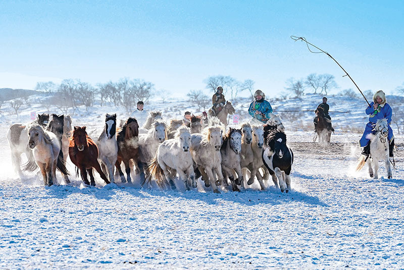 2024 锡林郭勒冬季蒙古马超级联赛总决赛在内蒙古自治区锡林郭勒盟锡林浩特市白音锡勒牧场开幕。活动中将举办丰富多彩的文旅商活动,吸引众多游客参与(2024年12月28日摄) 王正摄 / 本刊